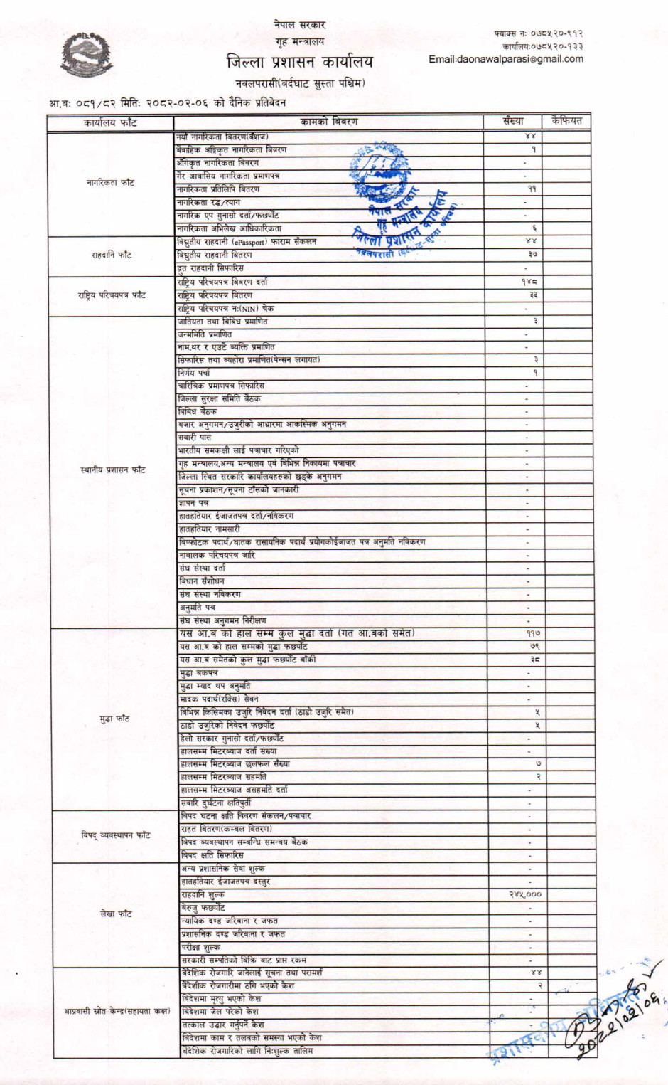 तस्बिर : मिति २०८२।०२।०६ गतेका दिन सम्पादित गरिएका कार्यको संख्यात्मक विवरण