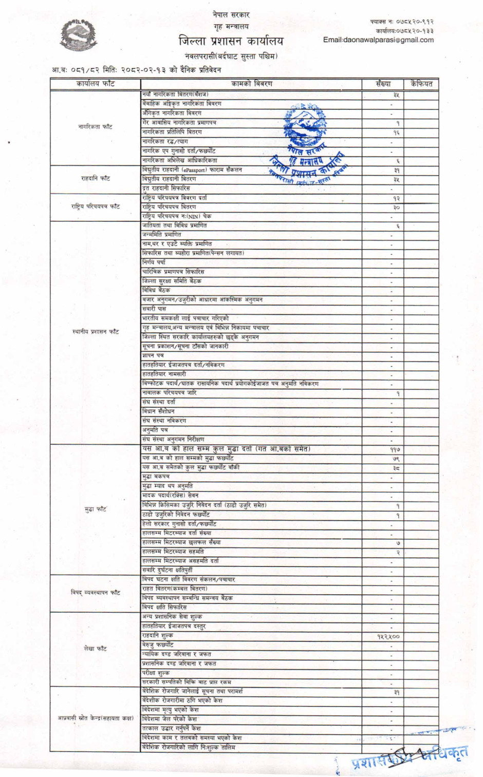 तस्बिर : मिति २०८२।०२।१३ गतेका दिन सम्पादित गरिएका कार्यको संख्यात्मक विवरण