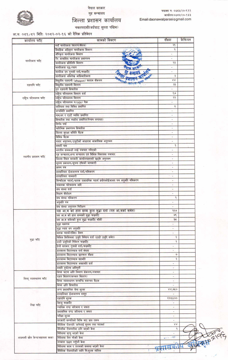 तस्बिर : मिति २०८२।०२।१६ गतेका दिन सम्पादित गरिएका कार्यको संख्यात्मक विवरण
