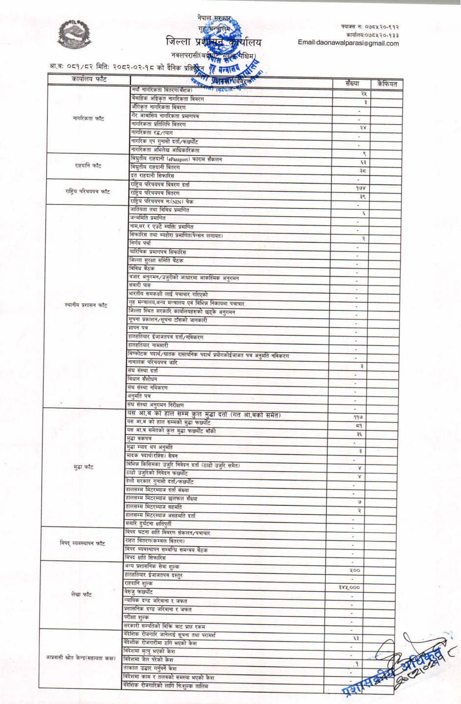 तस्बिर : मिति २०८२।०२।१८ गतेका दिन सम्पादित गरिएका कार्यको संख्यात्मक विवरण