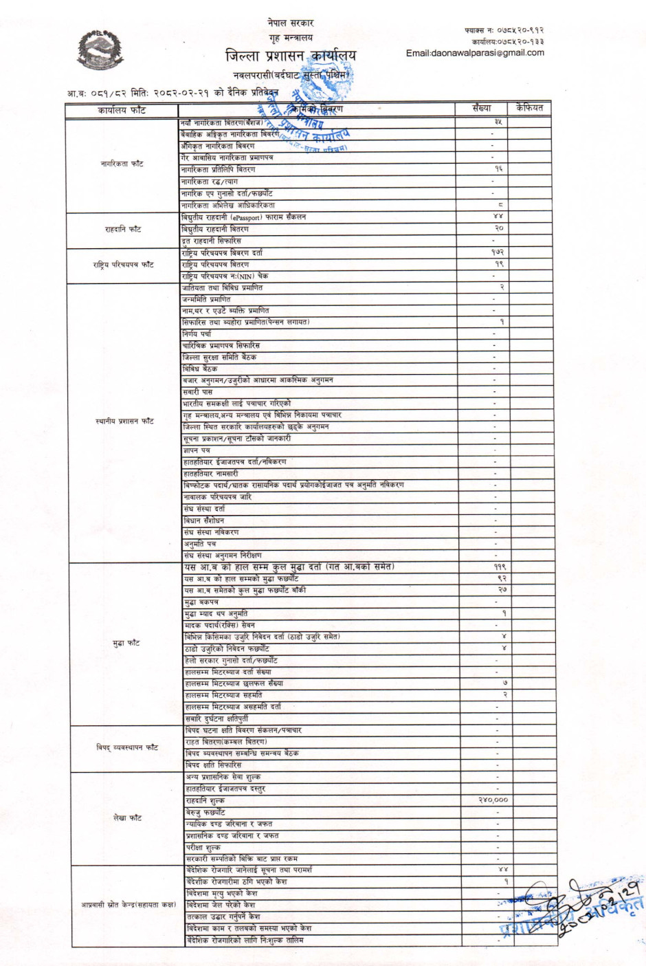 तस्बिर : मिति २०८२।०२।२१ गतेका दिन सम्पादित गरिएका कार्यको संख्यात्मक विवरण