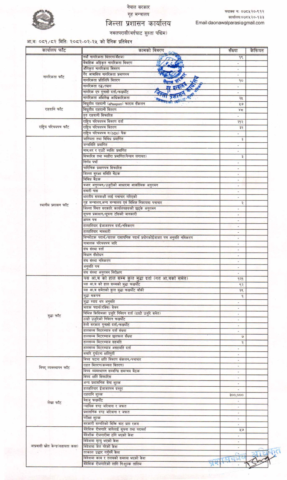 तस्बिर : मिति २०८२।०२।२५ गतेका दिन सम्पादित गरिएका कार्यको संख्यात्मक विवरण