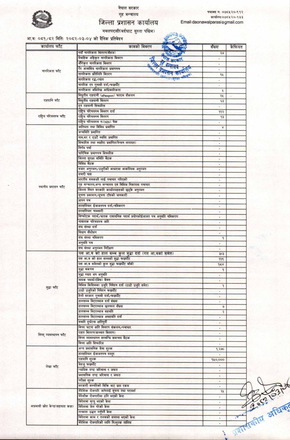 तस्बिर : मिति २०८२।०३।०४ गतेका दिन सम्पादित गरिएका कार्यको संख्यात्मक विवरण