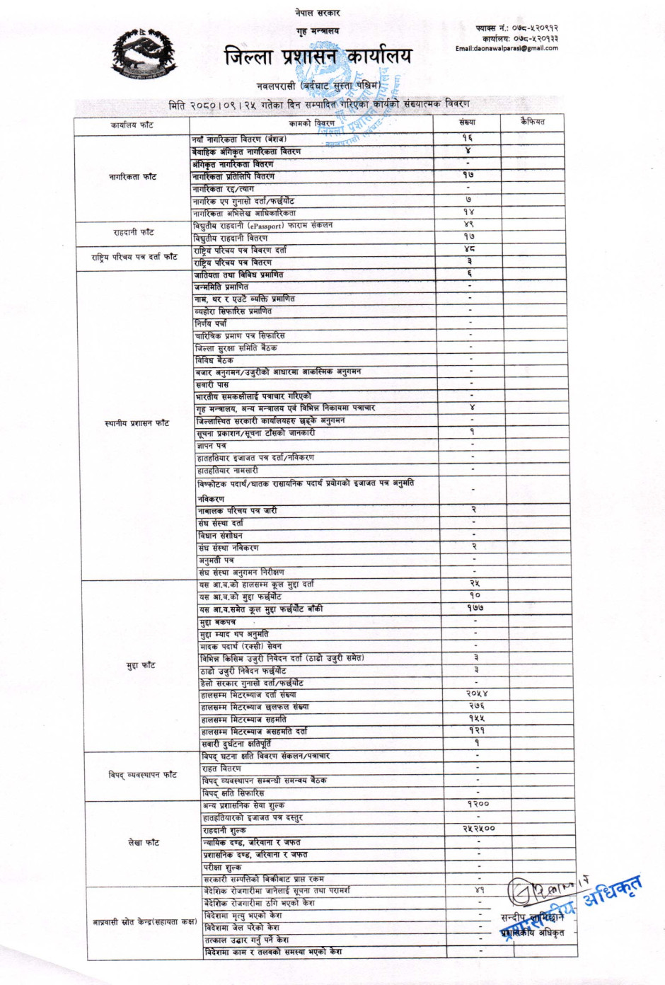तस्बिर : मिति २०८०।०९।२५ गतेका दिन सम्पादित गरिएका कार्यको संख्यात्मक विवरण