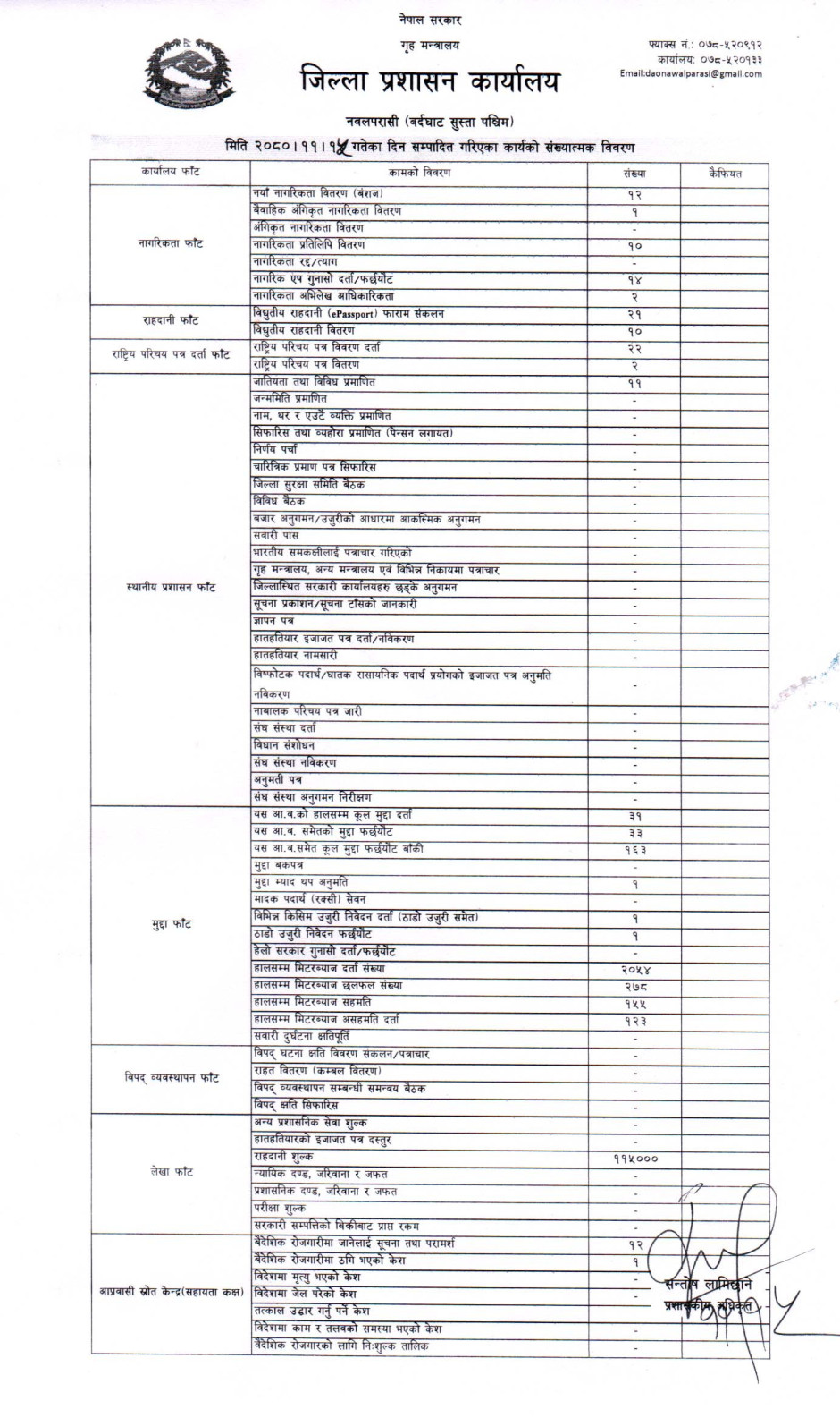 मिति २०८०।११।१५ गतेका दिन सम्पादित गरिएका कार्यको संख्यात्मक विवरण