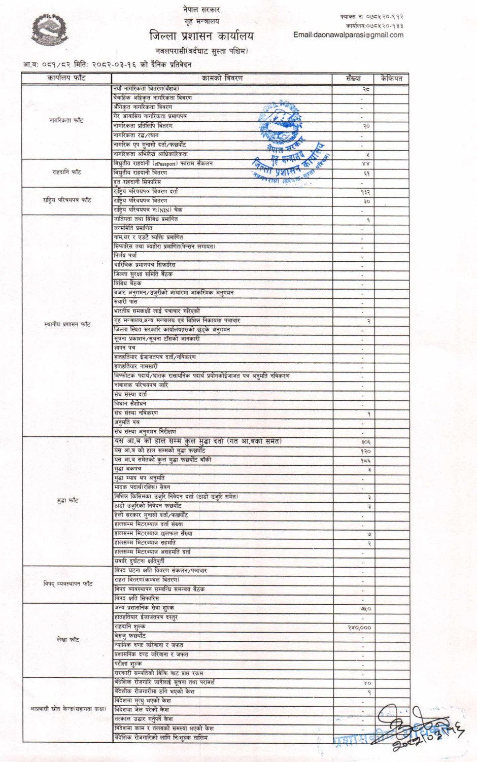 तस्बिर : मिति २०८२।०३।१६ गतेका दिन सम्पादित गरिएका कार्यको संख्यात्मक विवरण