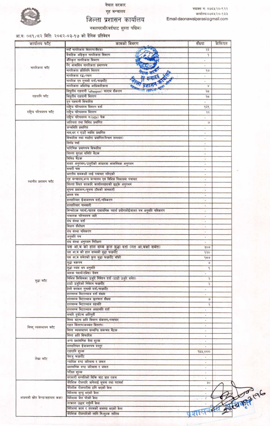 तस्बिर : मिति २०८२।०३।१७ गतेका दिन सम्पादित गरिएका कार्यको संख्यात्मक विवरण