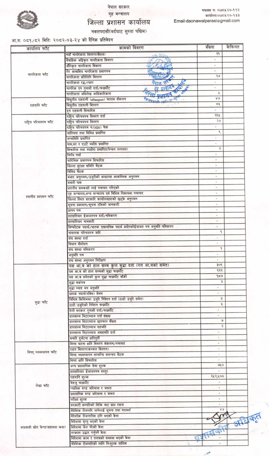 तस्बिर : मिति २०८२।०३।२४ गतेका दिन सम्पादित गरिएका कार्यको संख्यात्मक विवरण