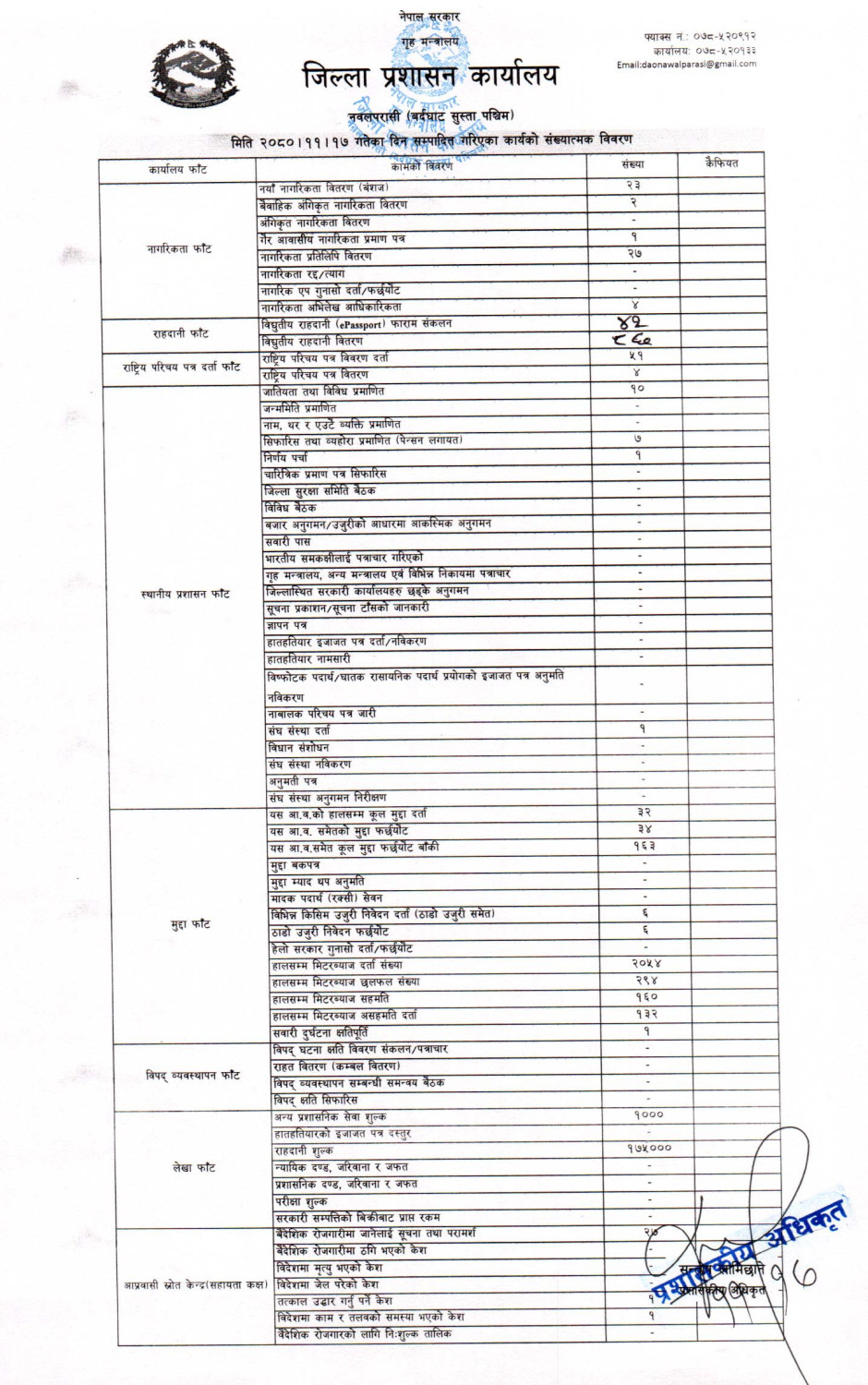 तस्बिर : मिति २०८०।११।१७ गतेका दिन सम्पादित गरिएका कार्यको संख्यात्मक विवरण