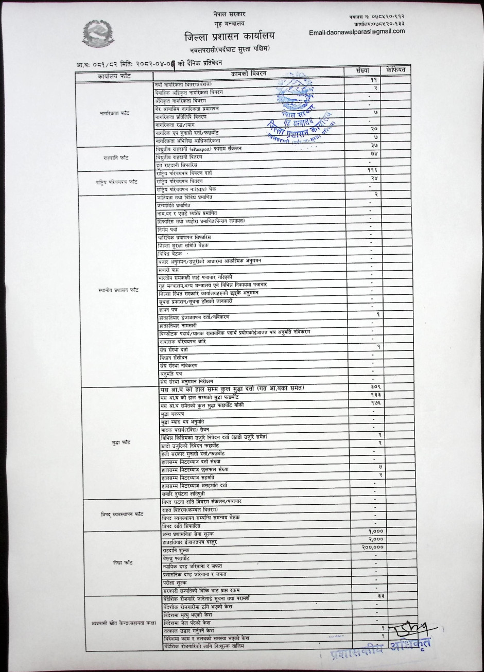 तस्बिर : मिति २०८२।०४।०१ गतेका दिन सम्पादित गरिएका कार्यको संख्यात्मक विवरण