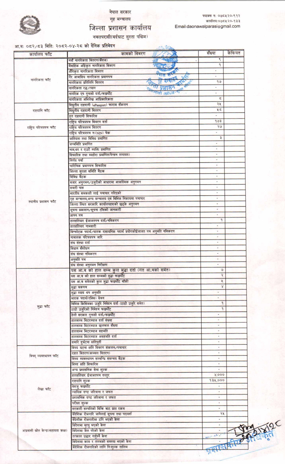 तस्बिर : मिति २०८२।०४।२८ गतेका दिन सम्पादित गरिएका कार्यको संख्यात्मक विवरण