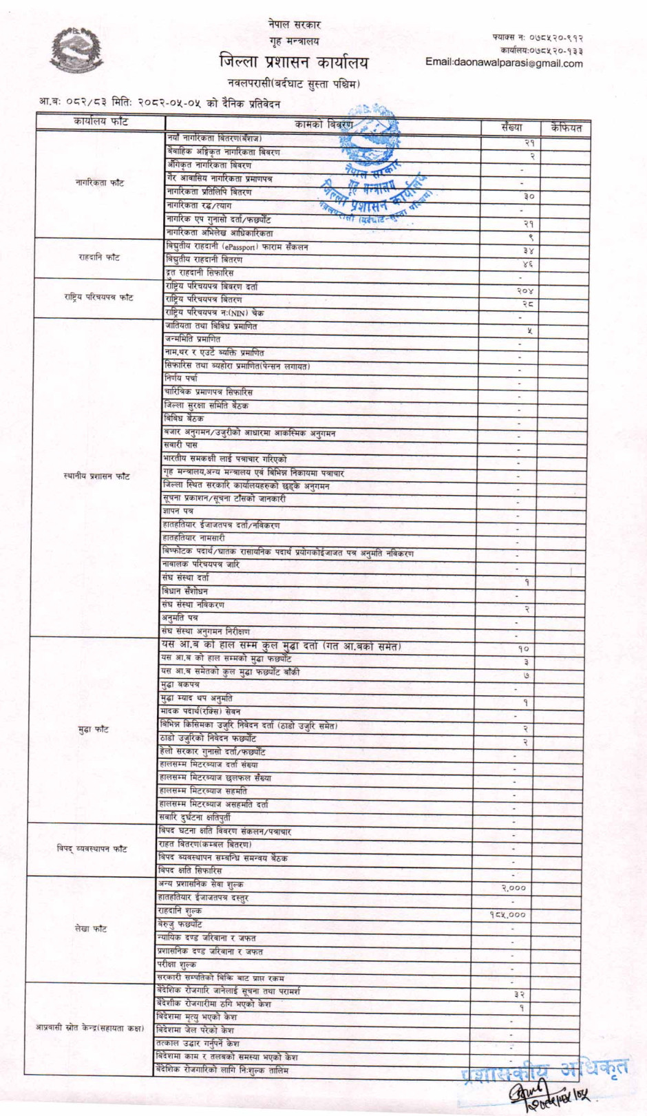 तस्बिर : मिति २०८२।०५।०५ गतेका दिन सम्पादित गरिएका कार्यको संख्यात्मक विवरण