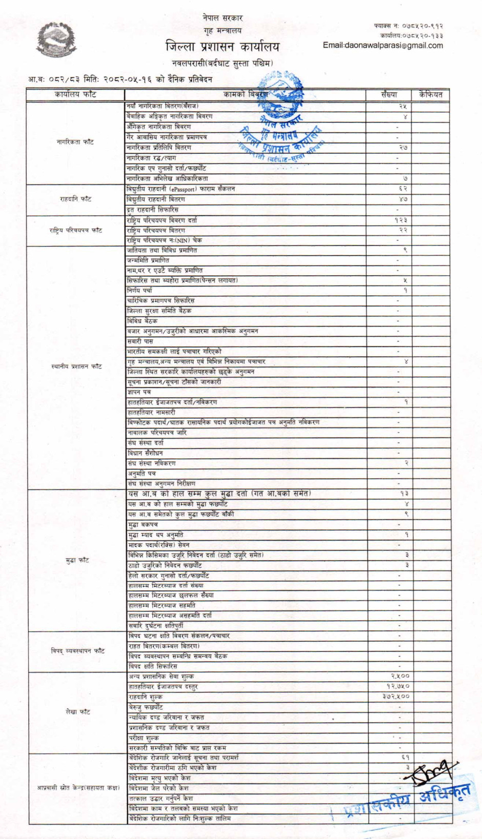 तस्बिर : मिति २०८२।०५।१६ गतेका दिन सम्पादित गरिएका कार्यको संख्यात्मक विवरण