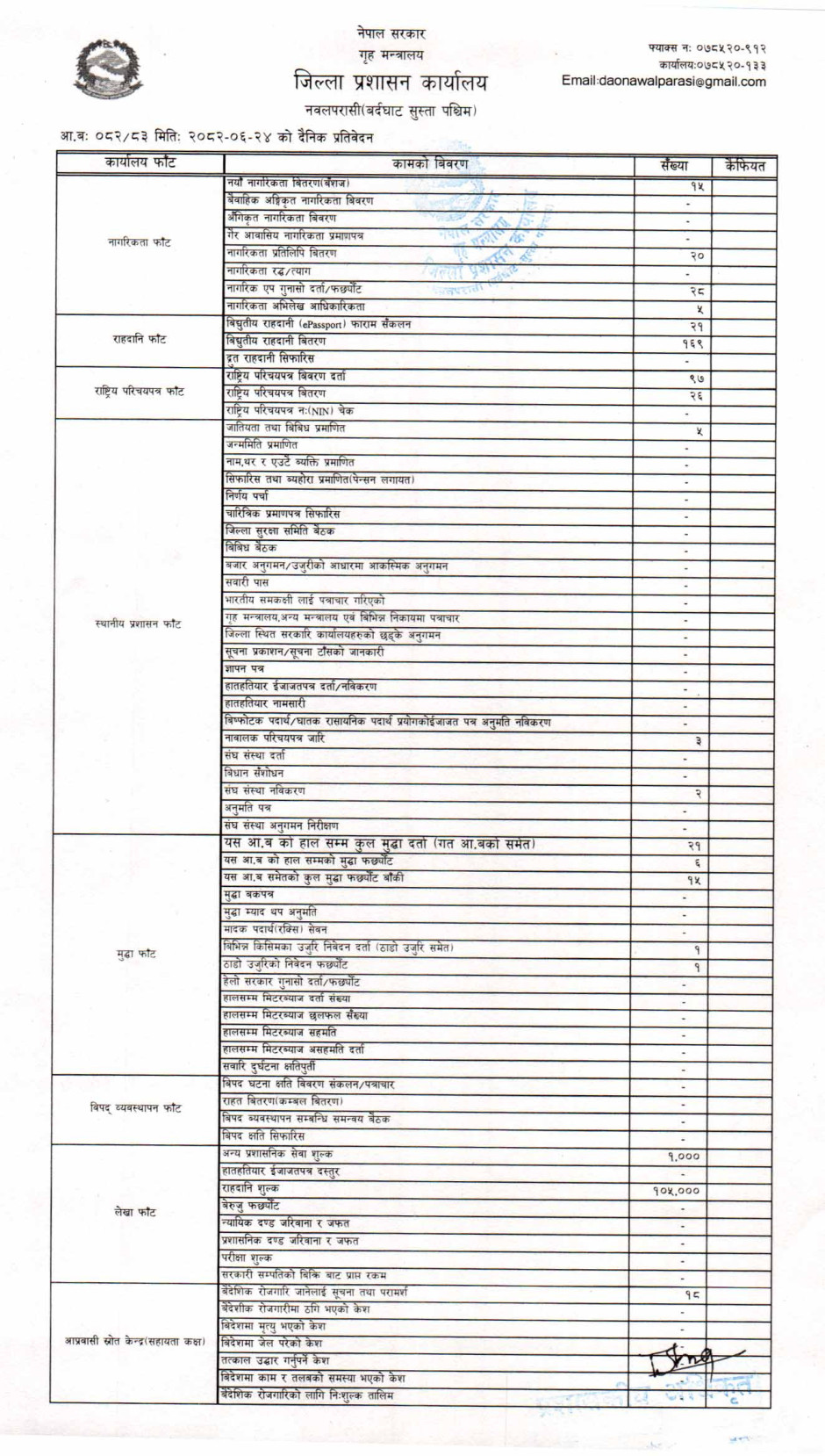 तस्बिर : मिति २०८२।०६।२४ गतेका दिन सम्पादित गरिएका कार्यको संख्यात्मक विवरण