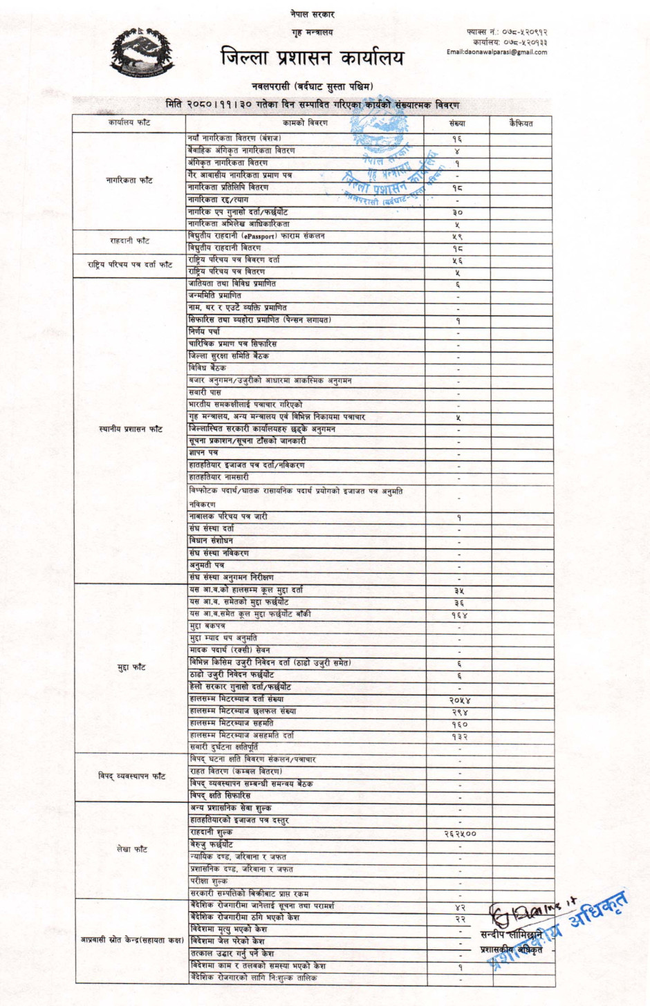 तस्बिर : मिति २०८०।११।३० गतेका दिन सम्पादित गरिएका कार्यको संख्यात्मक विवरण