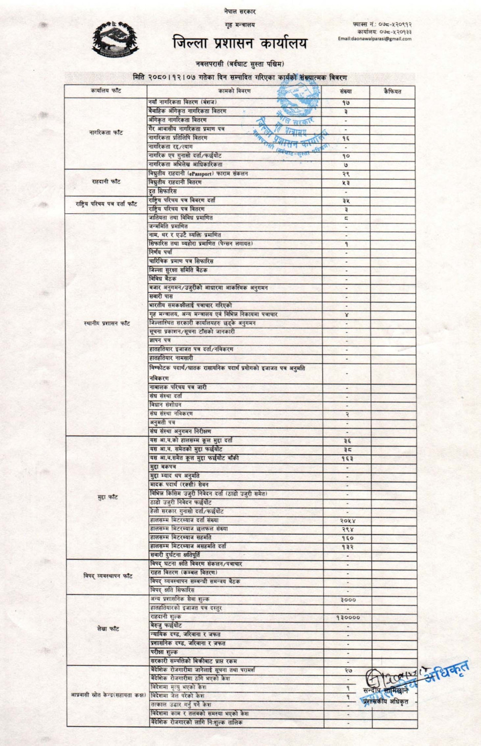 © सर्वाधिकार सुरक्षित जिल्ला प्रशासन कार्यालय, नवलपरासी (बर्दघाट सुस्ता पश्चिम) .