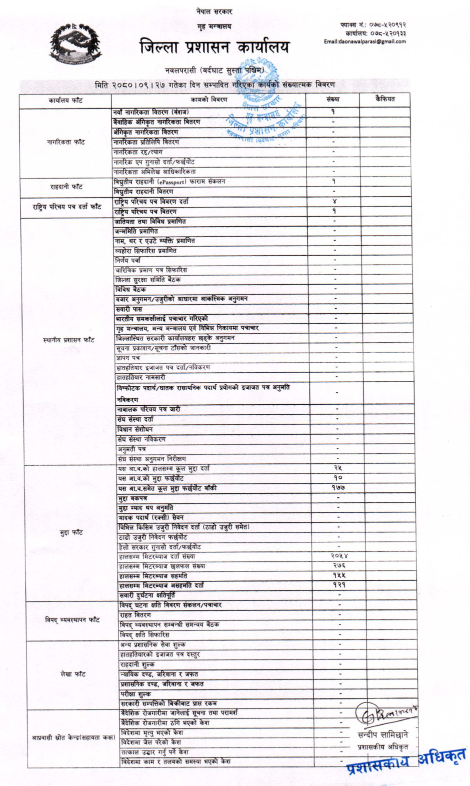तस्बिर : मिति २०८०।०९।२७ गतेका दिन सम्पादित गरिएका कार्यको संख्यात्मक विवरण