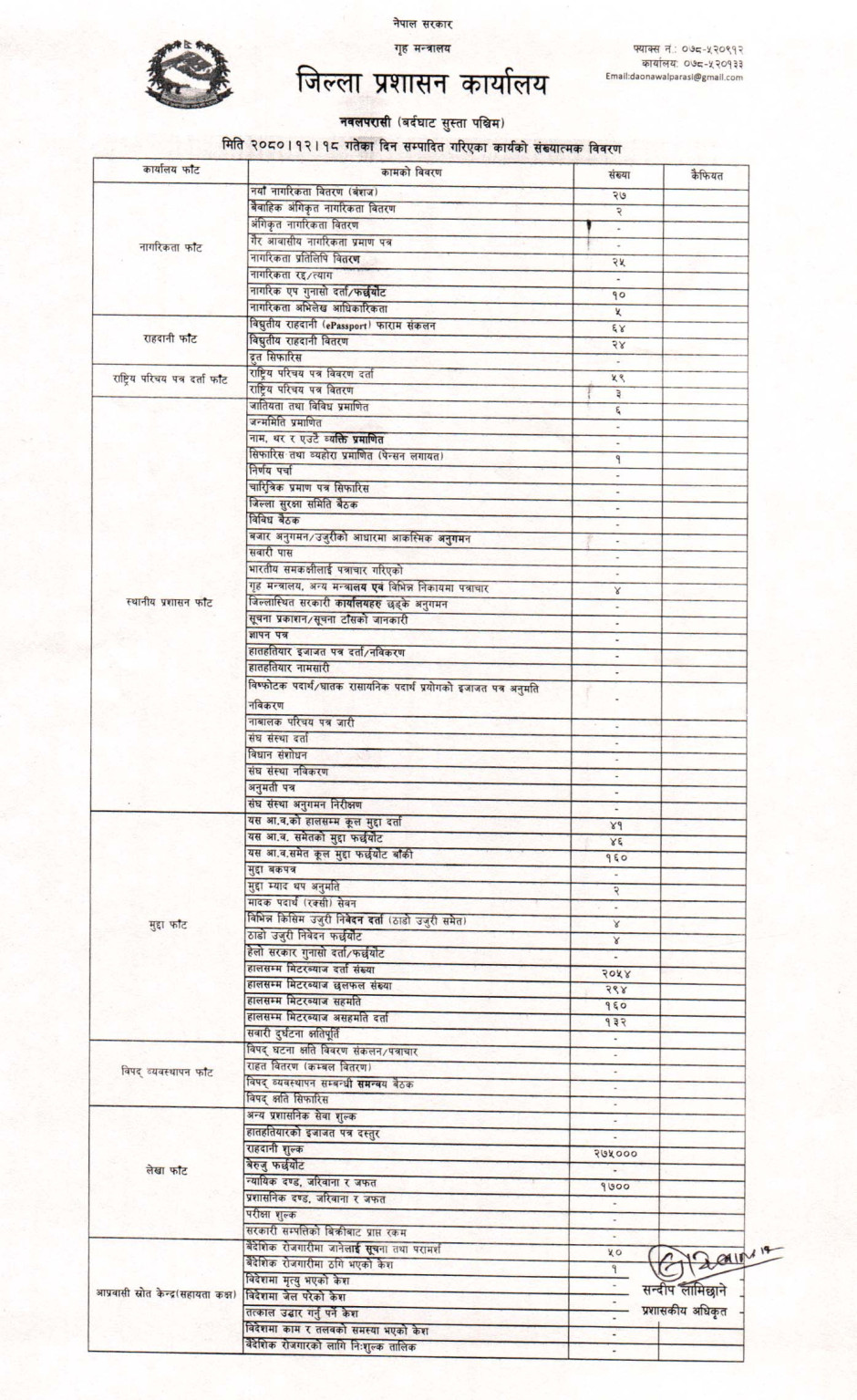 तस्बिर : मिति २०८०।१२।१८ गतेका दिन सम्पादित गरिएका कार्यको संख्यात्मक विवरण