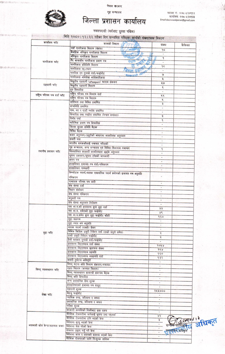 तस्बिर : मिति २०८०।१२।२२ गतेका दिन सम्पादित गरिएका कार्यको संख्यात्मक विवरण