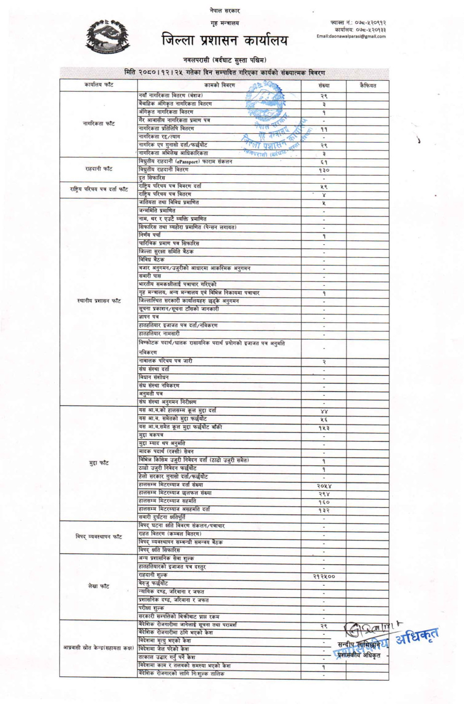 तस्बिर : मिति २०८०।१२।२५ गतेका दिन सम्पादित गरिएका कार्यको संख्यात्मक विवरण