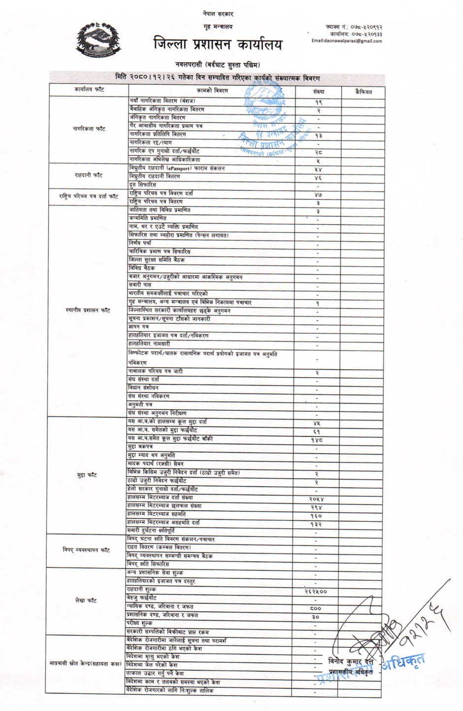 तस्बिर : मिति २०८०।१२।२६ गतेका दिन सम्पादित गरिएका कार्यको संख्यात्मक विवरण