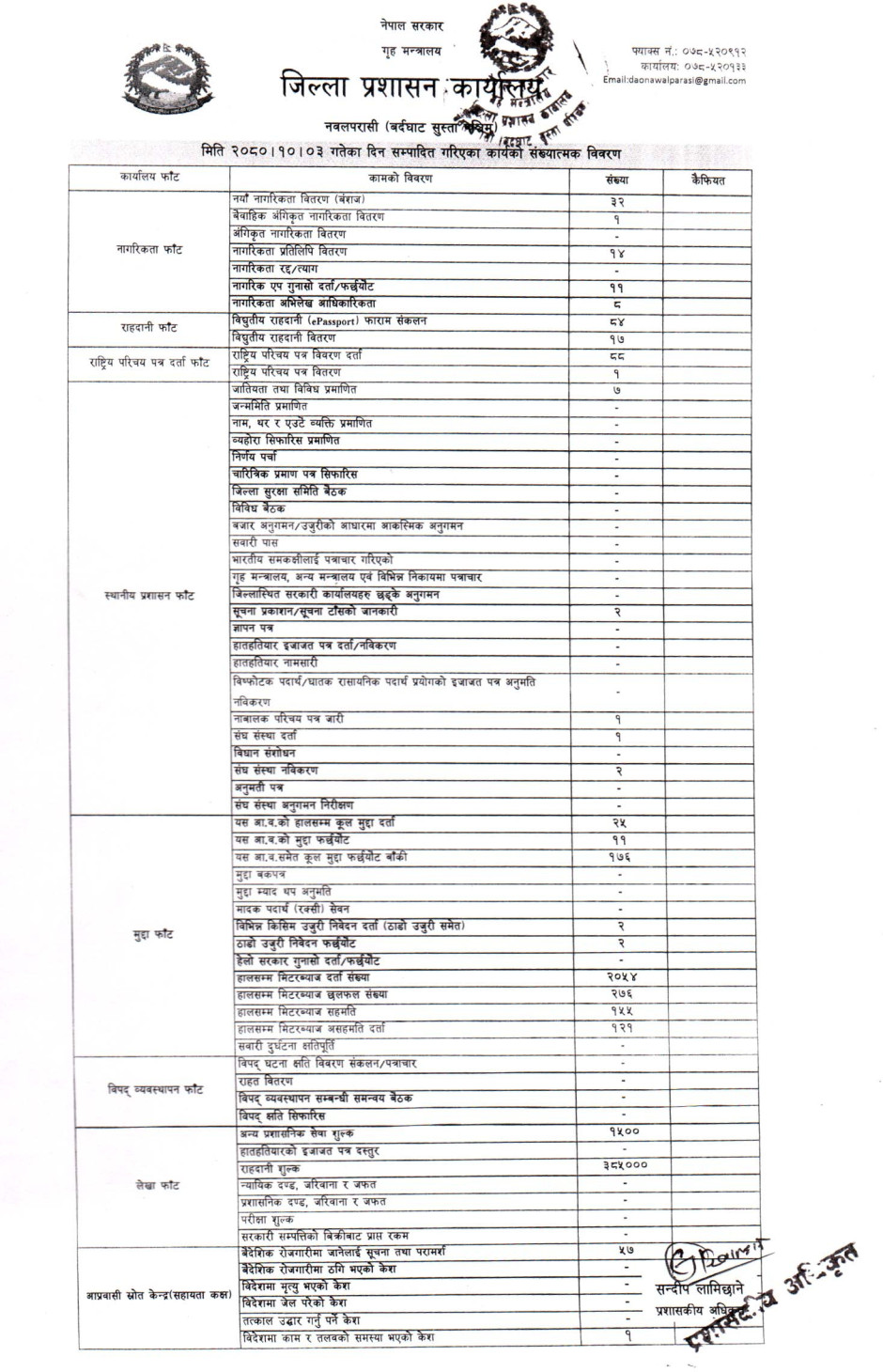 तस्बिर : मिति २०८०।१०।०३ गतेका दिन सम्पादित गरिएका कार्यको संख्यात्मक विवरण