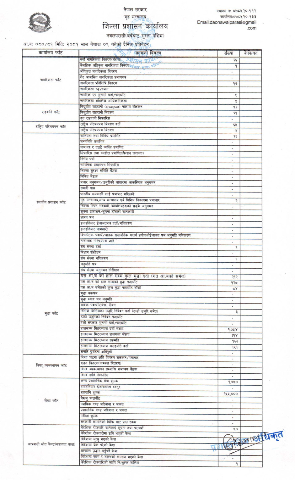 © सर्वाधिकार सुरक्षित जिल्ला प्रशासन कार्यालय, नवलपरासी (बर्दघाट सुस्ता पश्चिम) .