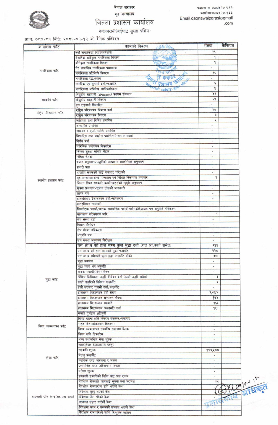 तस्बिर : मिति २०८१।०१।१२ गतेका दिन सम्पादित गरिएका कार्यको संख्यात्मक विवरण