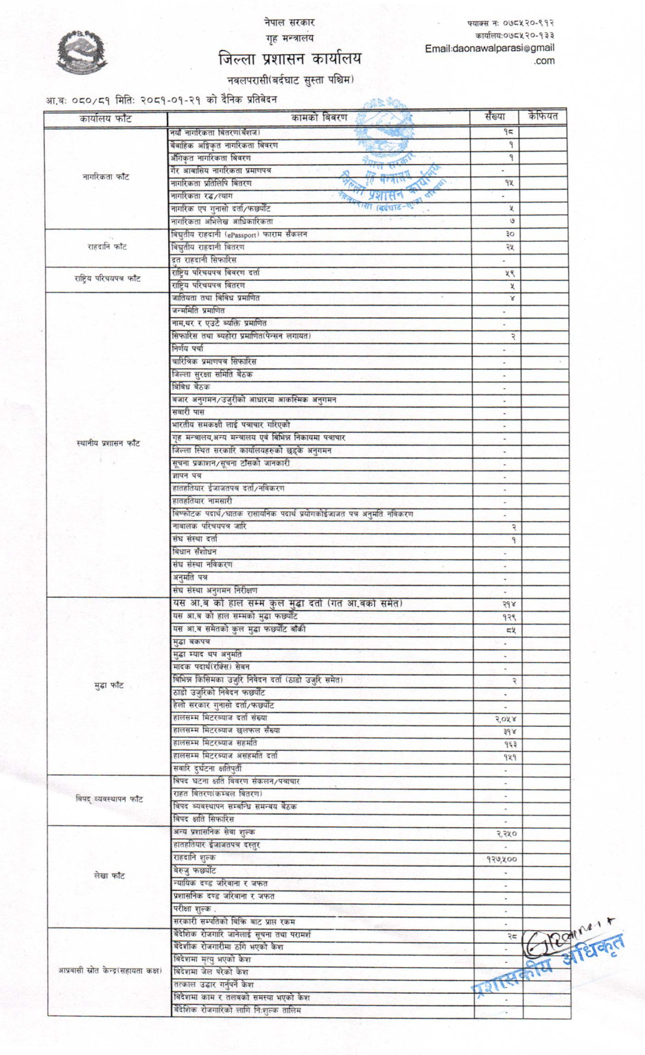 तस्बिर : मिति २०८१।०१।२१ गतेका दिन सम्पादित गरिएका कार्यको संख्यात्मक विवरण