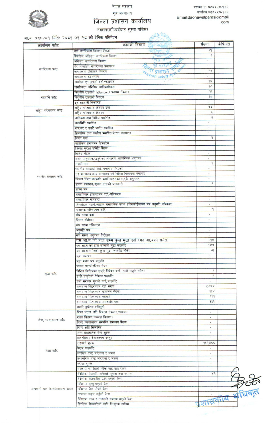 तस्बिर : मिति २०८१।०१।२८ गतेका दिन सम्पादित गरिएका कार्यको संख्यात्मक विवरण