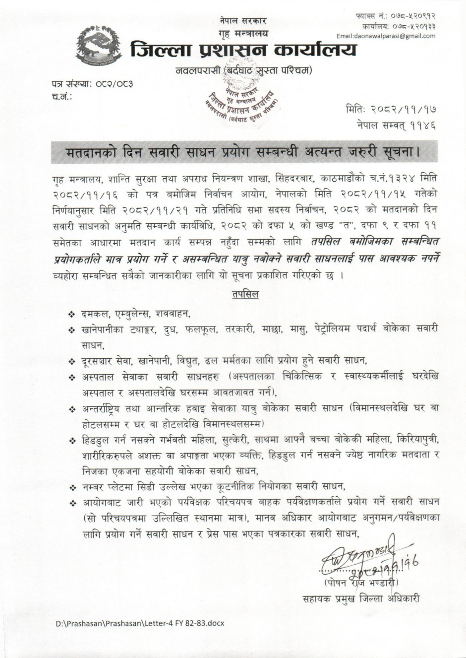 तस्बिर : मतदानको दिन सवारी साधन प्रयोग सम्बन्धी अत्यन्त जरुरी सूचना।