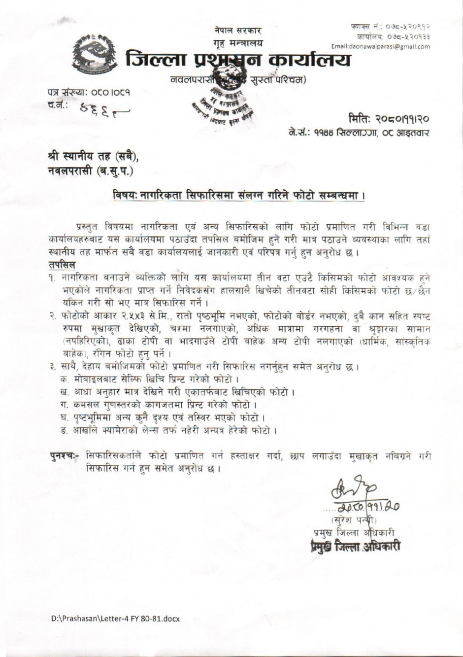 तस्बिर : नागरिकता सिफारिसमा संलग्न गरिने फोटो सम्बन्धमा