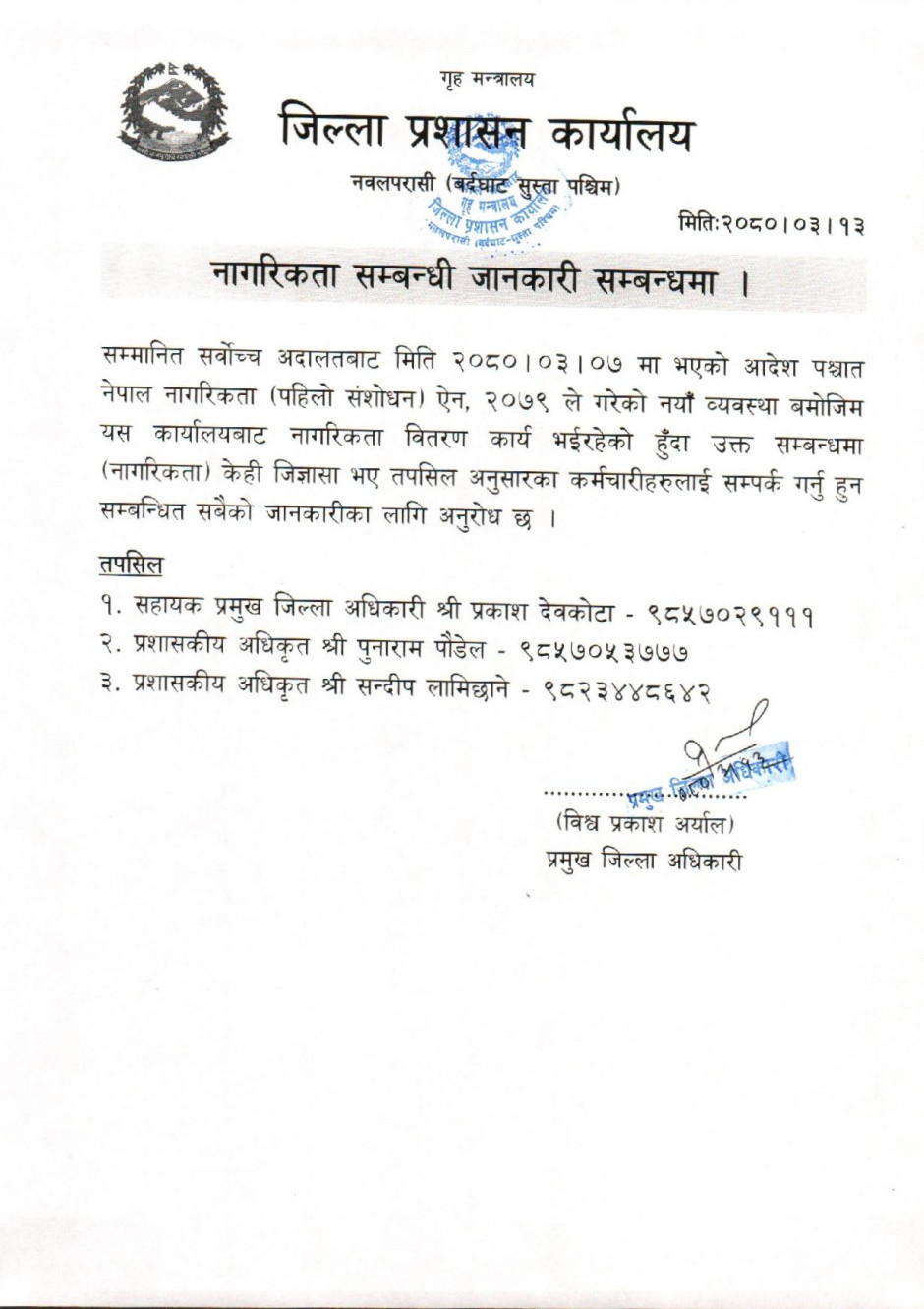 © सर्वाधिकार सुरक्षित जिल्ला प्रशासन कार्यालय, नवलपरासी (बर्दघाट सुस्ता पश्चिम) .