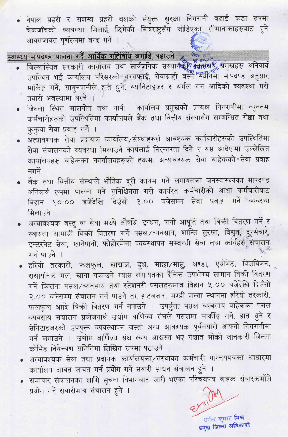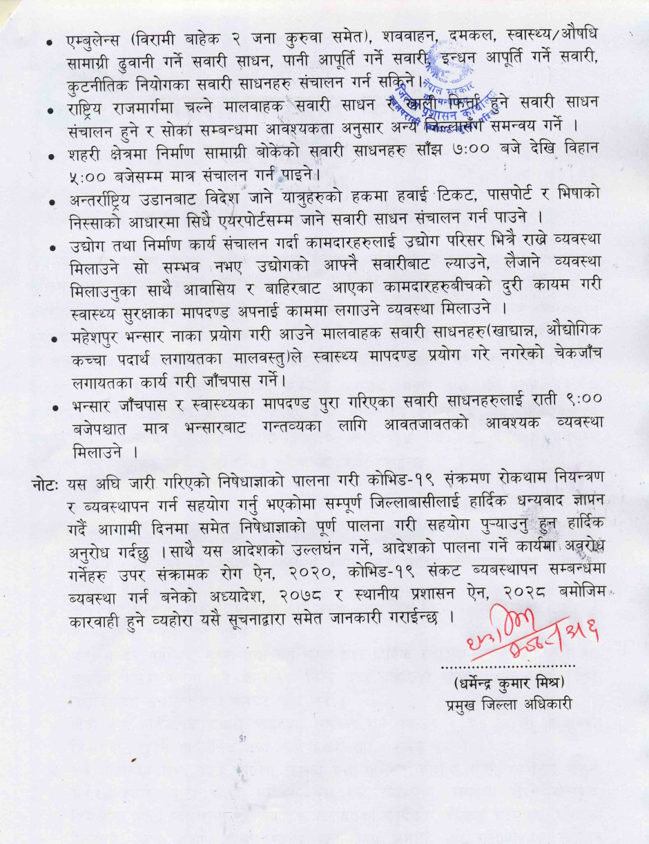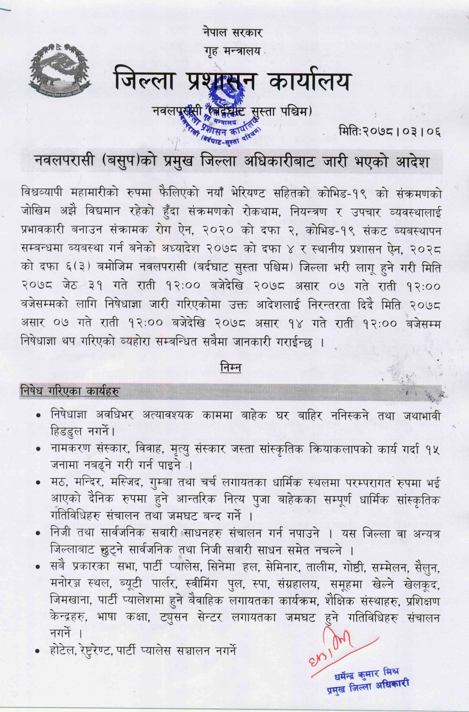 तस्बिर : प्रमुख जिल्ला अधिकारीबाट मिति २०७८।०३।०६ गते जारी भएको निषेधाज्ञाको आदेश