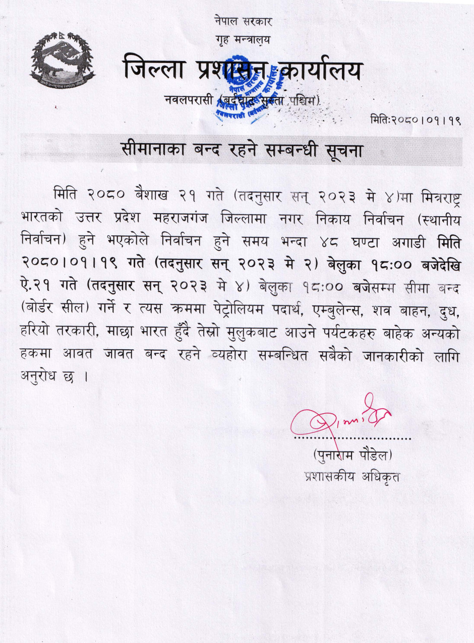 तस्बिर : सिमानाका बन्द रहने सम्बन्धी सूचना