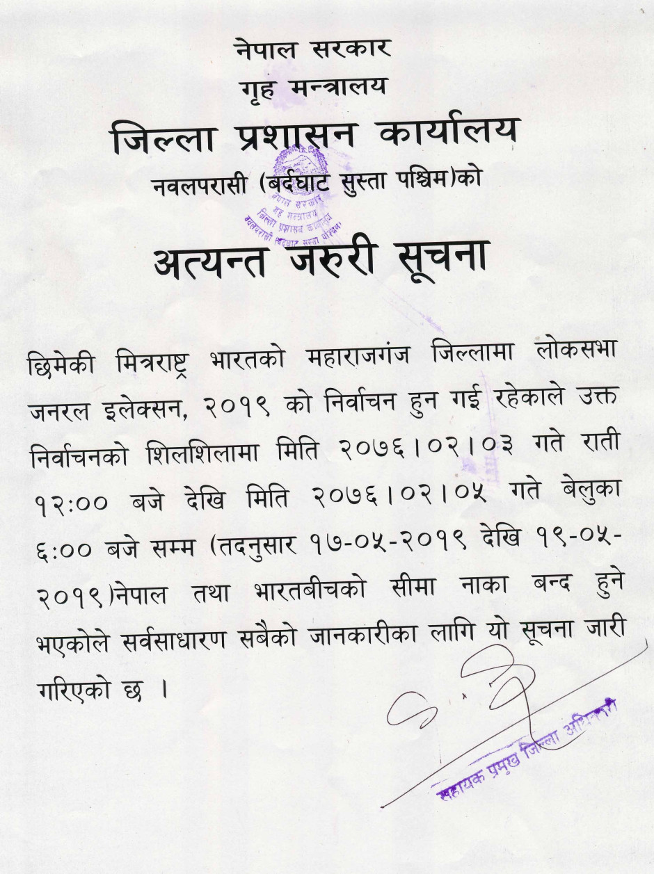© सर्वाधिकार सुरक्षित जिल्ला प्रशासन कार्यालय, नवलपरासी (बर्दघाट सुस्ता पश्चिम)