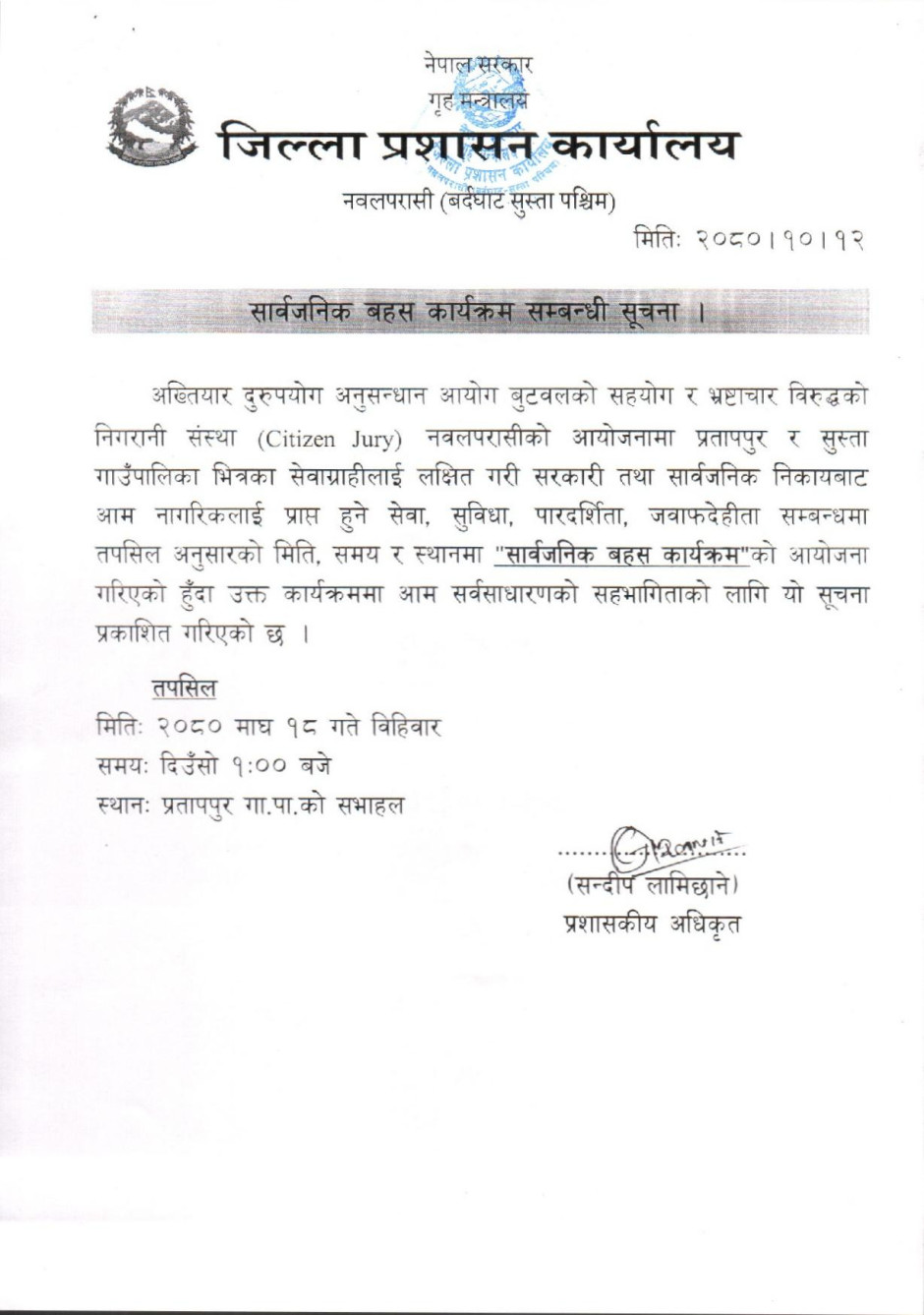 तस्बिर : सार्वजनिक बहस कार्यक्रम सम्बन्धी सूचना ।
