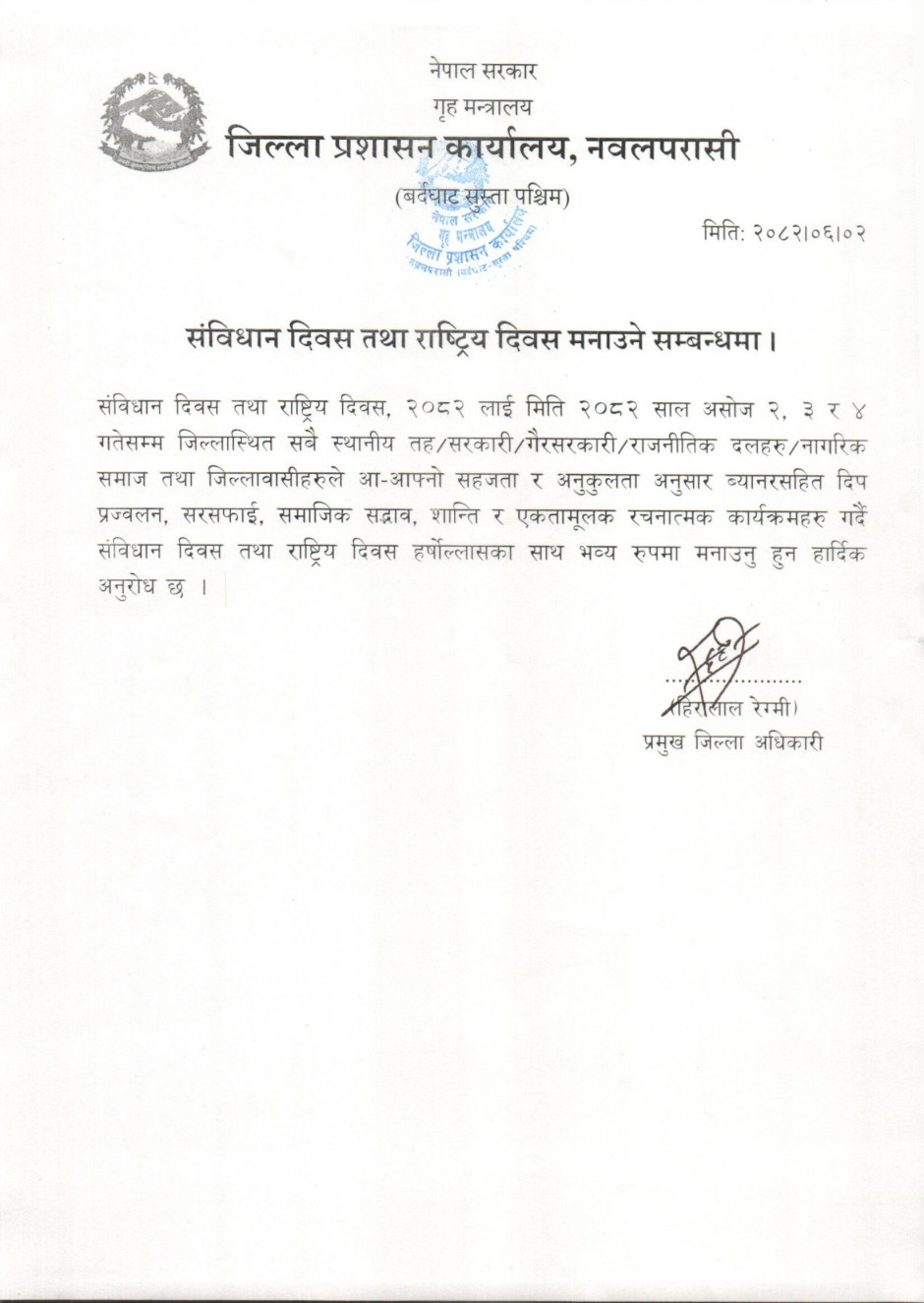 तस्बिर : संविधान दिवस तथा राष्ट्रिय दिवस मनाउने सम्बन्धमा