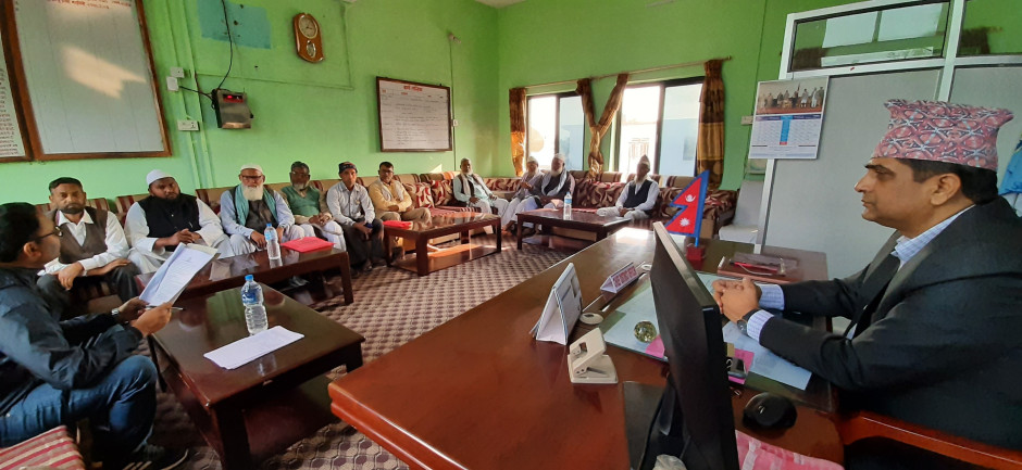 आज मिति २०७६ साल मंसिर ०६ गते शुक्रवारका दिन प्रमुख जिल्ला अधिकारी श्री शम्भुप्रसाद मरासिनीज्यूको अध्यक्षतामा २०७७ सालमा साउदी अरबको मक्का मदिनामा हज गर्न जान चाहने ईच्छुक नेपाली मुसलमानहरुले पेश गर्नु पर्ने आवेदनको सम्बन्धमा नेपाल हज समितिको सचिवालयले प्रकाशन गरेको सूचना लगायतका विषयमा सम्बन्धित सरोकारवालाहरुसँग छलफल गरी जानकारी गराउने कार्यक्रम सम्पन्न भयो ।