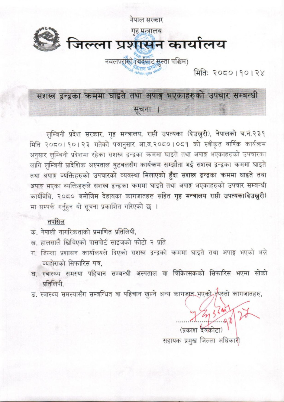 तस्बिर : सशस्त्र द्वन्द्वका क्रममा घाइते तथा अपाङ्ग भएकाहरुको उपचार सम्बन्धी सूचना