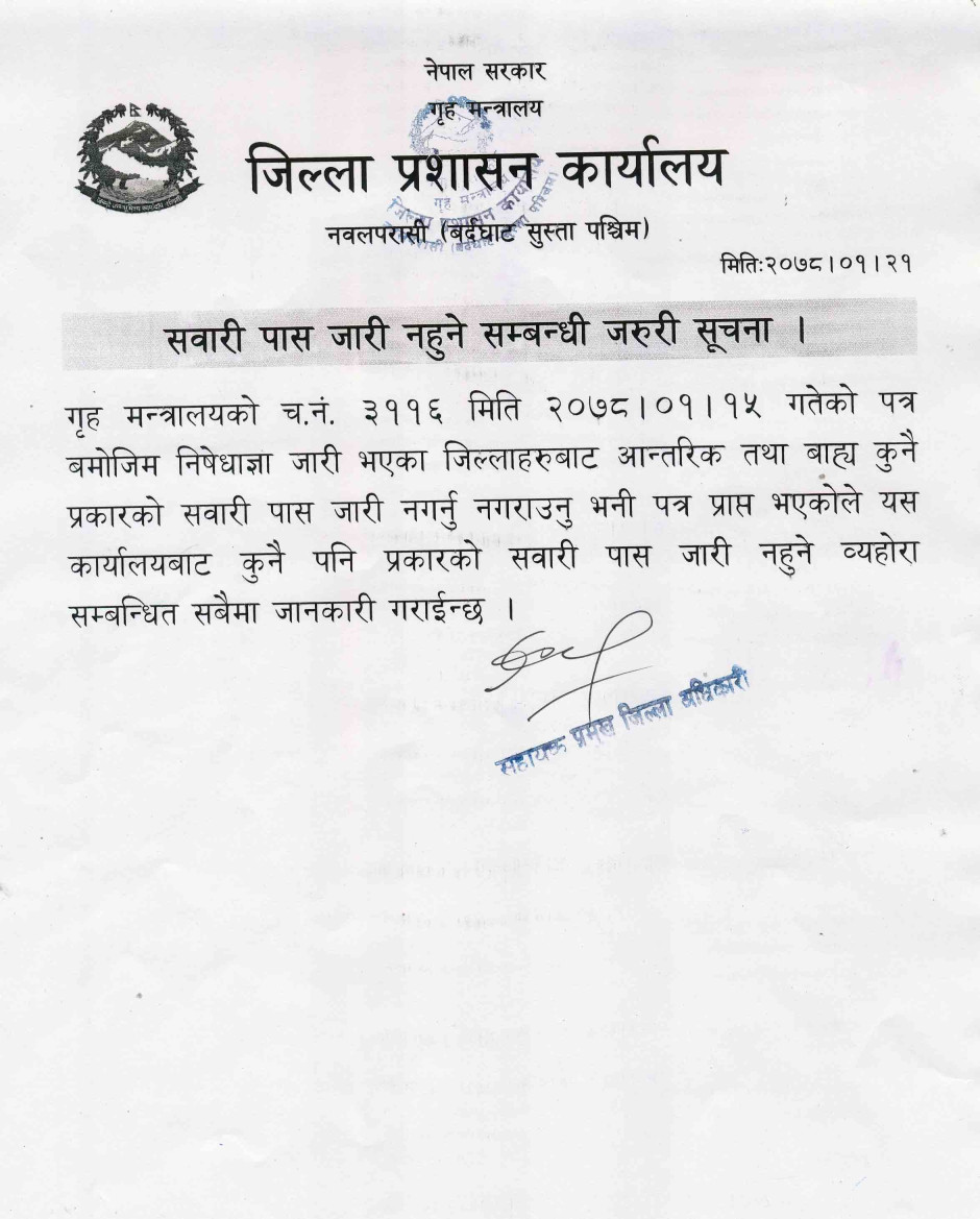 तस्बिर : सवारी पास जारी नहुने सम्बन्धी जरुरी सूचना