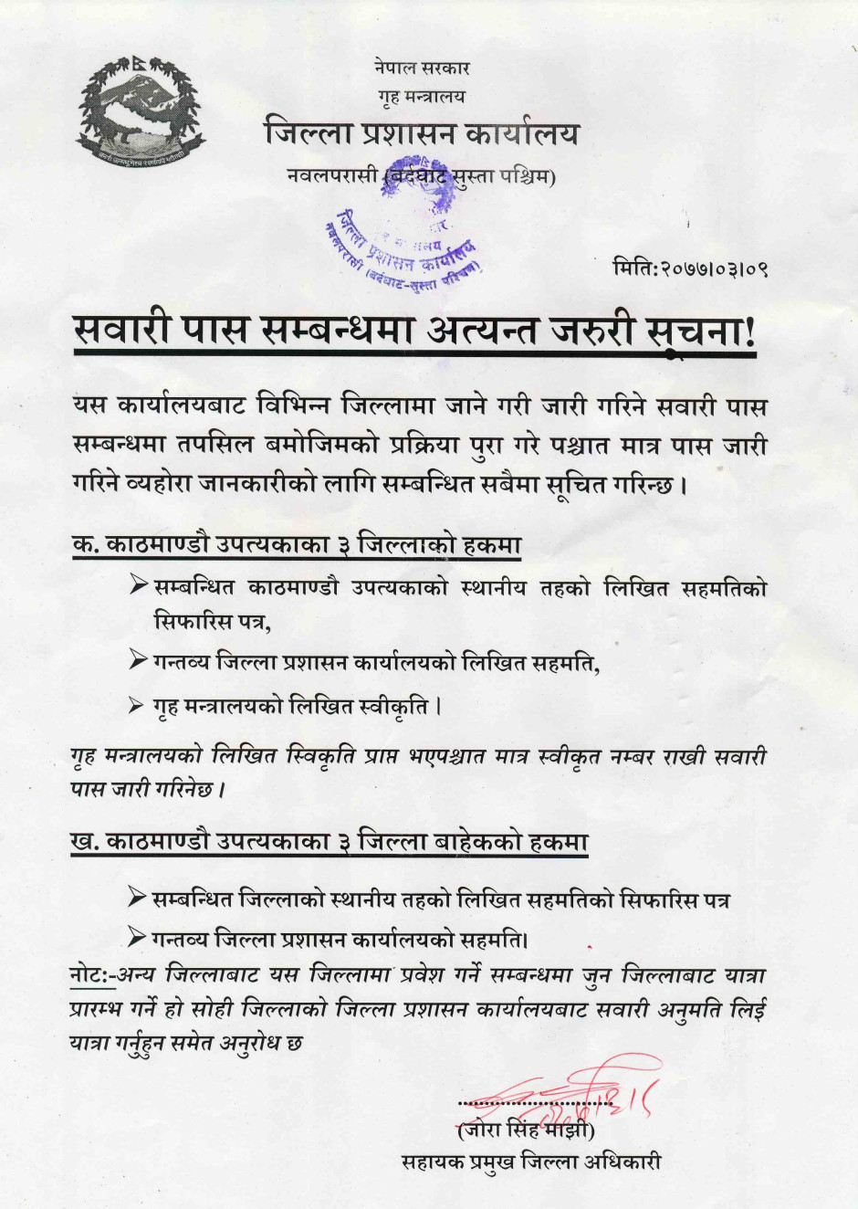 तस्बिर : सवारी पास सम्बन्धी अत्यन्त जरुरी सूचना