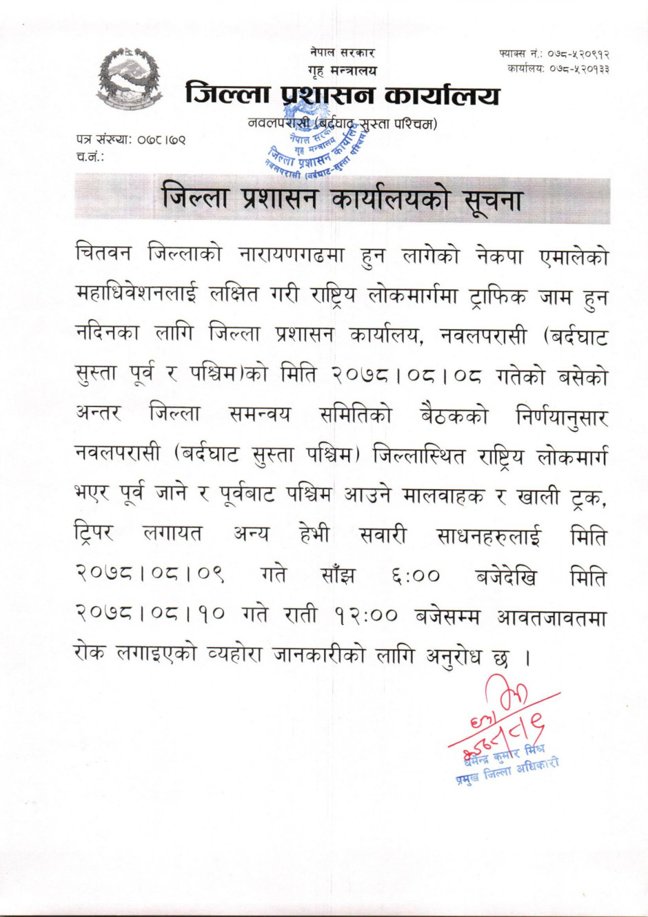 © सर्वाधिकार सुरक्षित जिल्ला प्रशासन कार्यालय, नवलपरासी (बर्दघाट सुस्ता पश्चिम)
