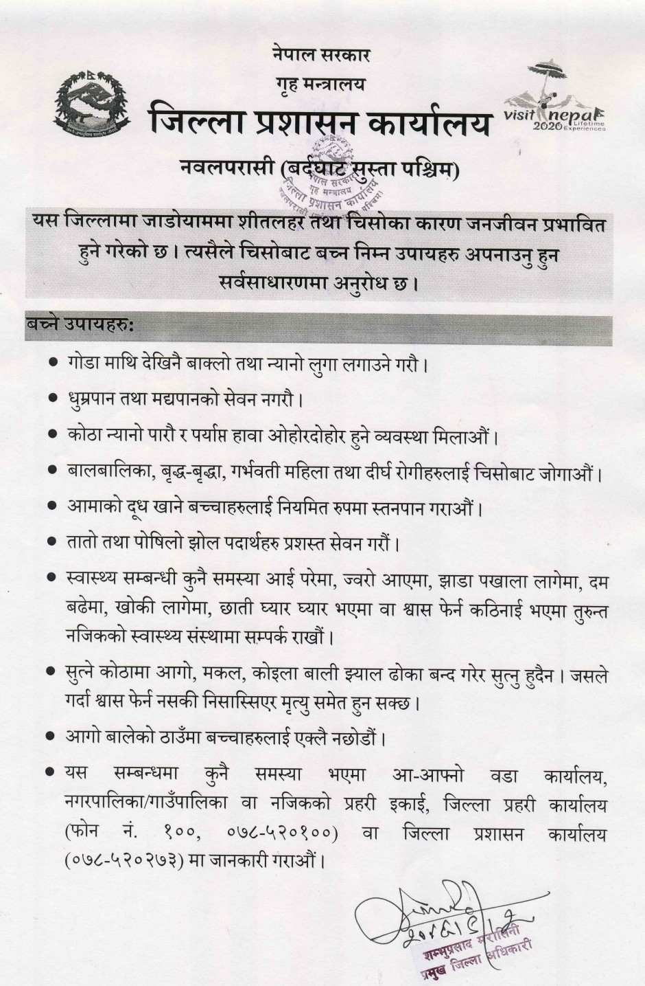 © सर्वाधिकार सुरक्षित जिल्ला प्रशासन कार्यालय, नवलपरासी (बर्दघाट सुस्ता पश्चिम) .