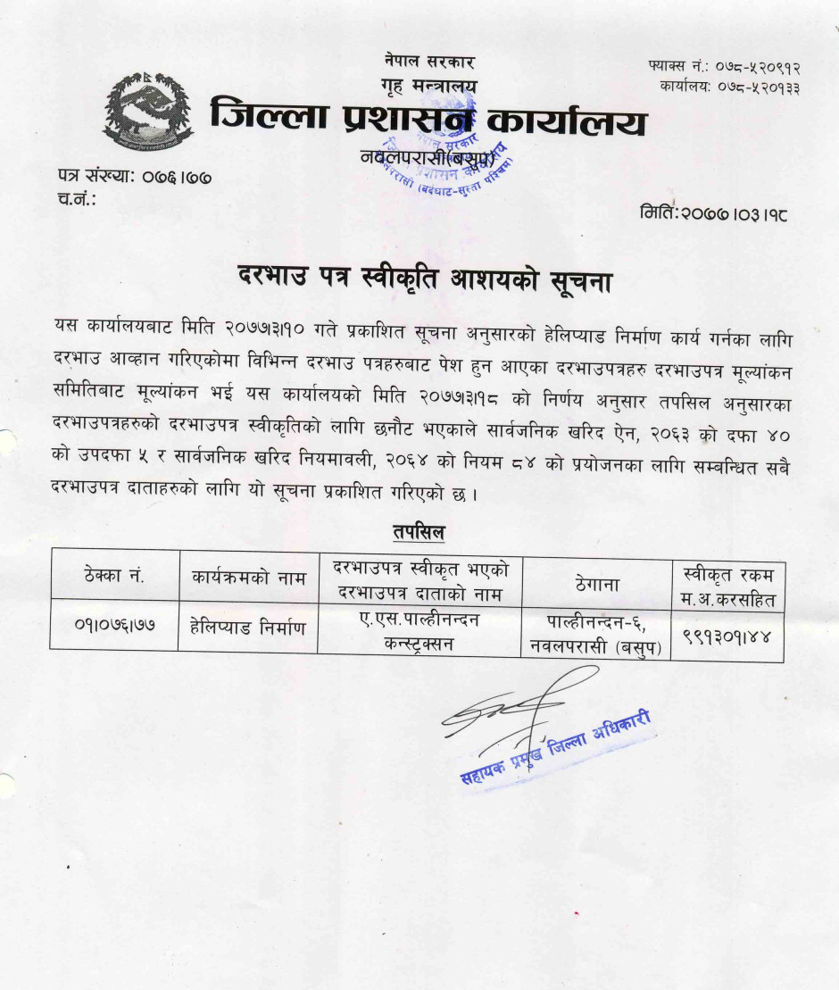 © सर्वाधिकार सुरक्षित जिल्ला प्रशासन कार्यालय, नवलपरासी (बर्दघाट सुस्ता पश्चिम)