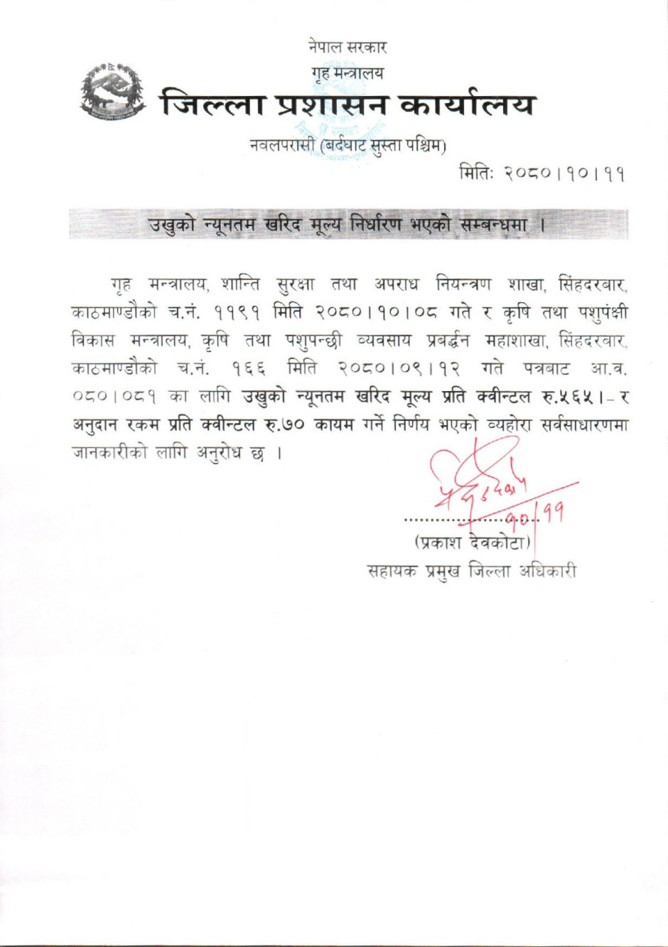 तस्बिर : उखुको न्यूनतम खरिद मूल्य निर्धारण भएको सम्बन्धमा ।